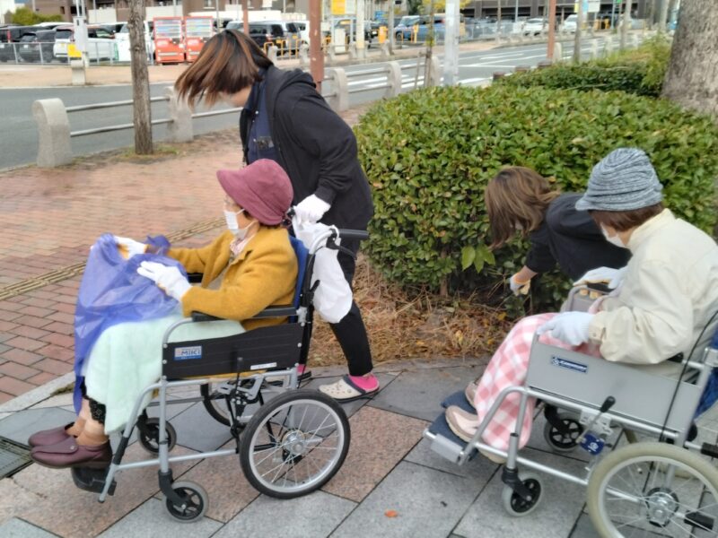 介護施設から外にでて、多くの人と会話する機会は大変有益。参加者は『地域貢献できて良かった』と、嬉しそうにしておられたのが印象的でした。施設側の対応も想像して現場が温かい雰囲気に包まれました。